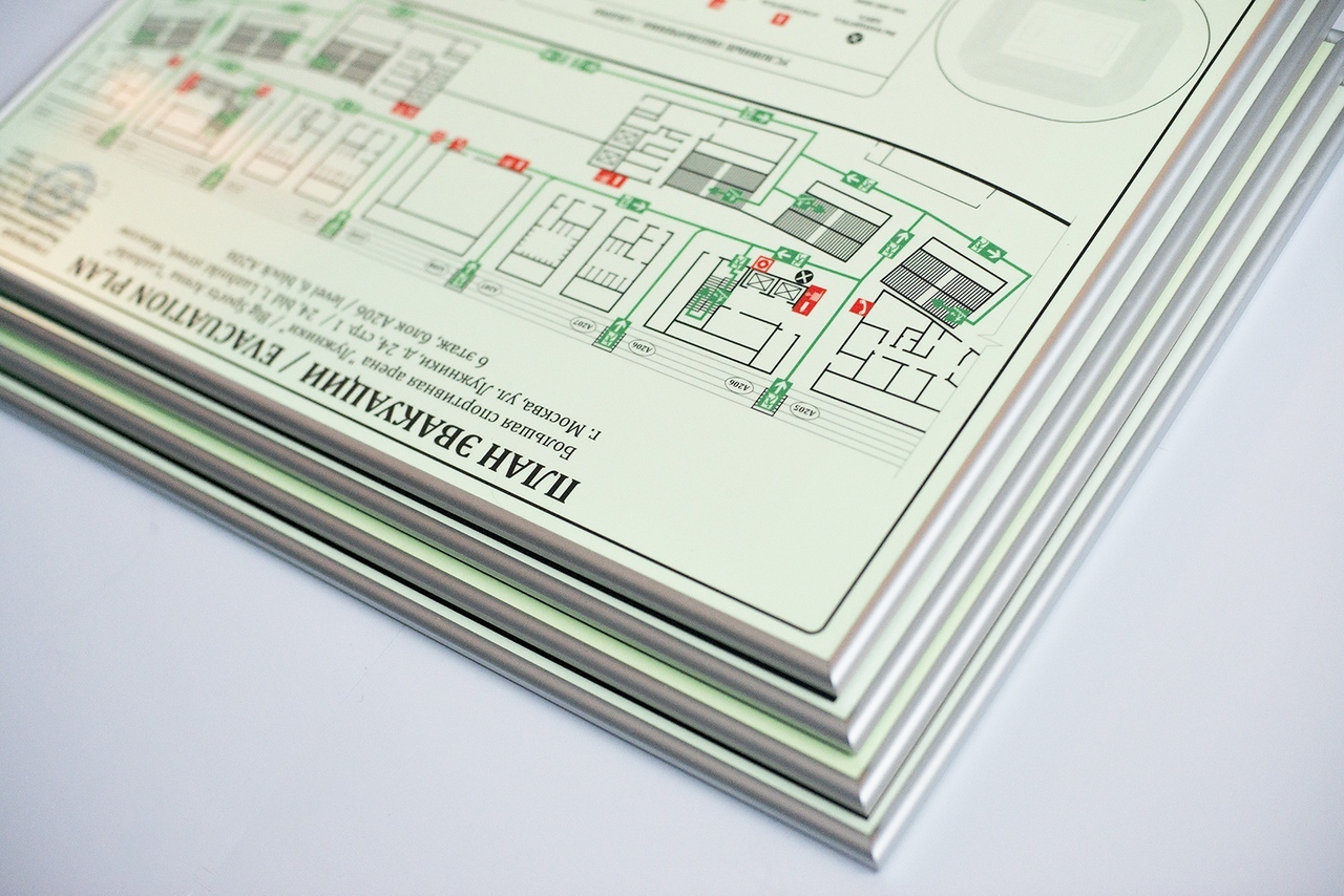 Наша компания предлагает оперативную, качественную и максимально точную разработку и изготовление планов эвакуации персонала в случае возникновения пожара или объявления пожарной тревоги. Продукция сопровождается всеми необходимыми сертификатами и документами: лицензия МЧС и бухгалтерские документы.